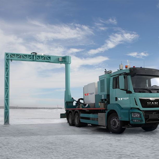 Escáner de camiones/contenedores de todos los tamaños utilizados en el transporte de mercancías en los pasos fronterizos, puertos, puestos de logística y centros de distribución.